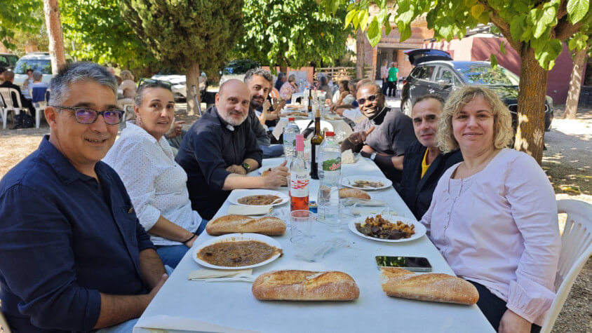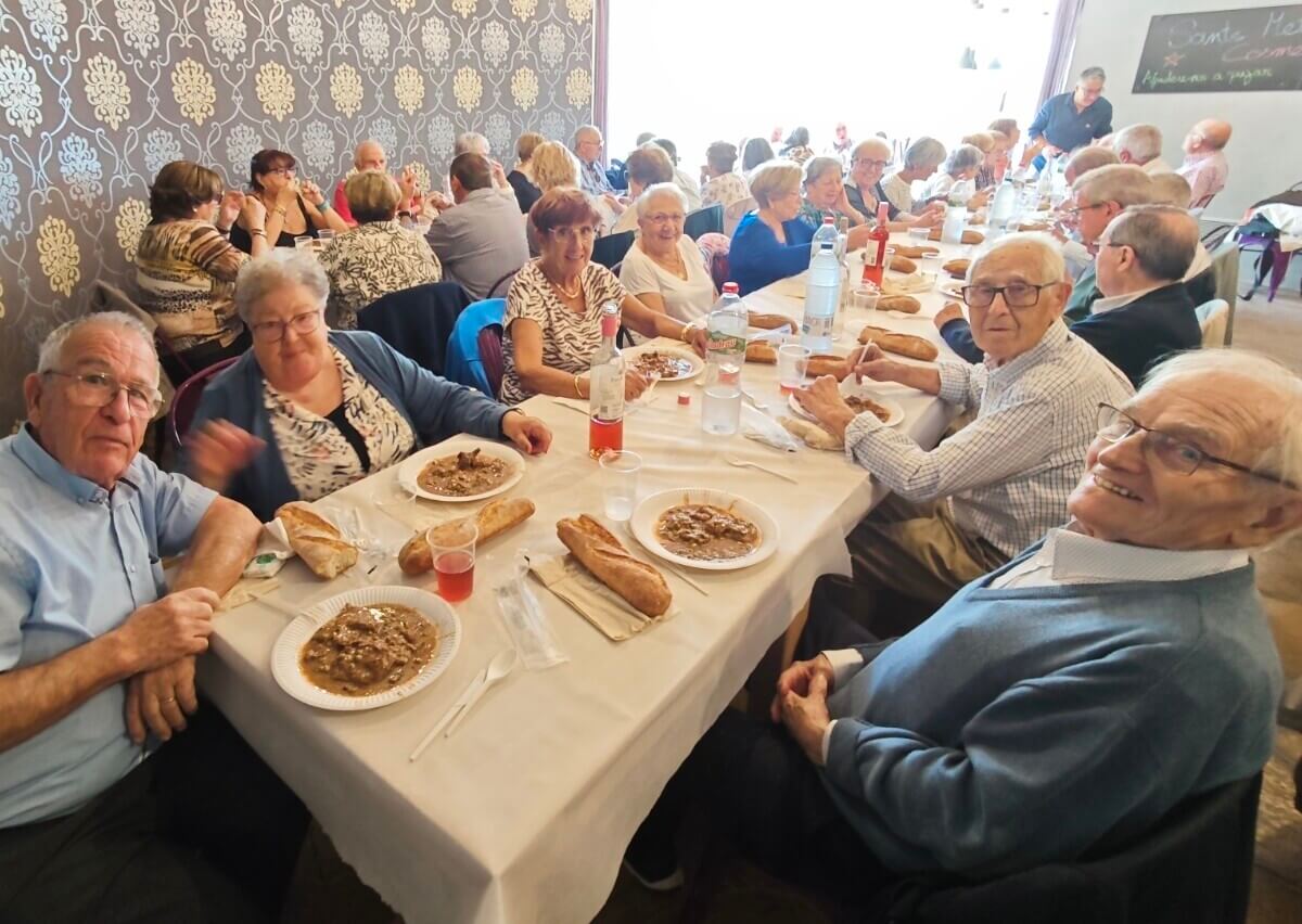 Per acabar de fer el dia rodó, se celebrava el dinar de germanor al restaurant de l’ermita, on van compartir taula un centenar de persones. L’àpat va ser a base d’ensalada russa, fricandó i postres.