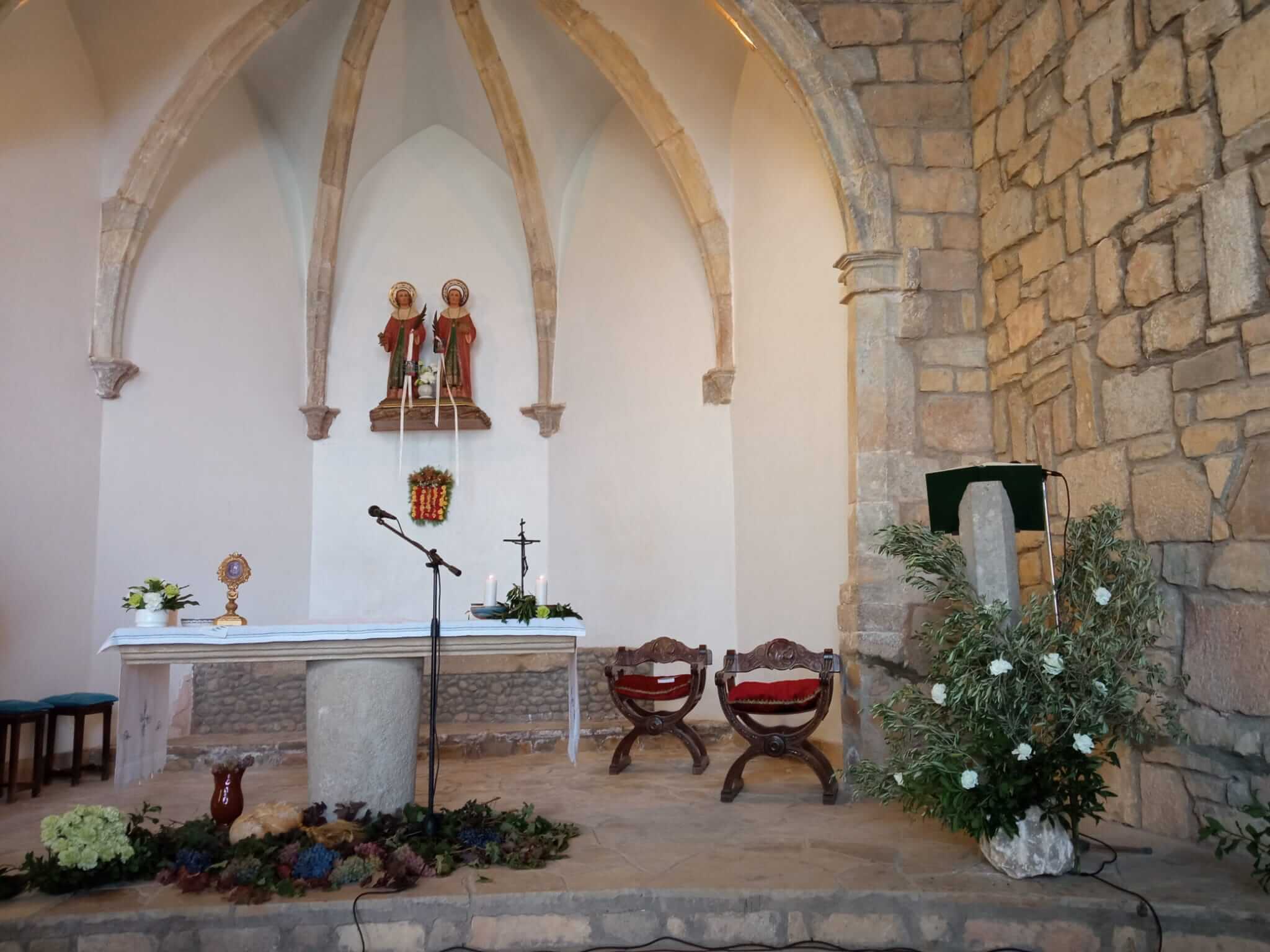 Els actes van començar amb una missa, en honor a Sant Cosme i Sant Damià, seguida de la benedicció de la tradicional coca amb raïm que, un cop més, s’ha repartit entre els assistents.