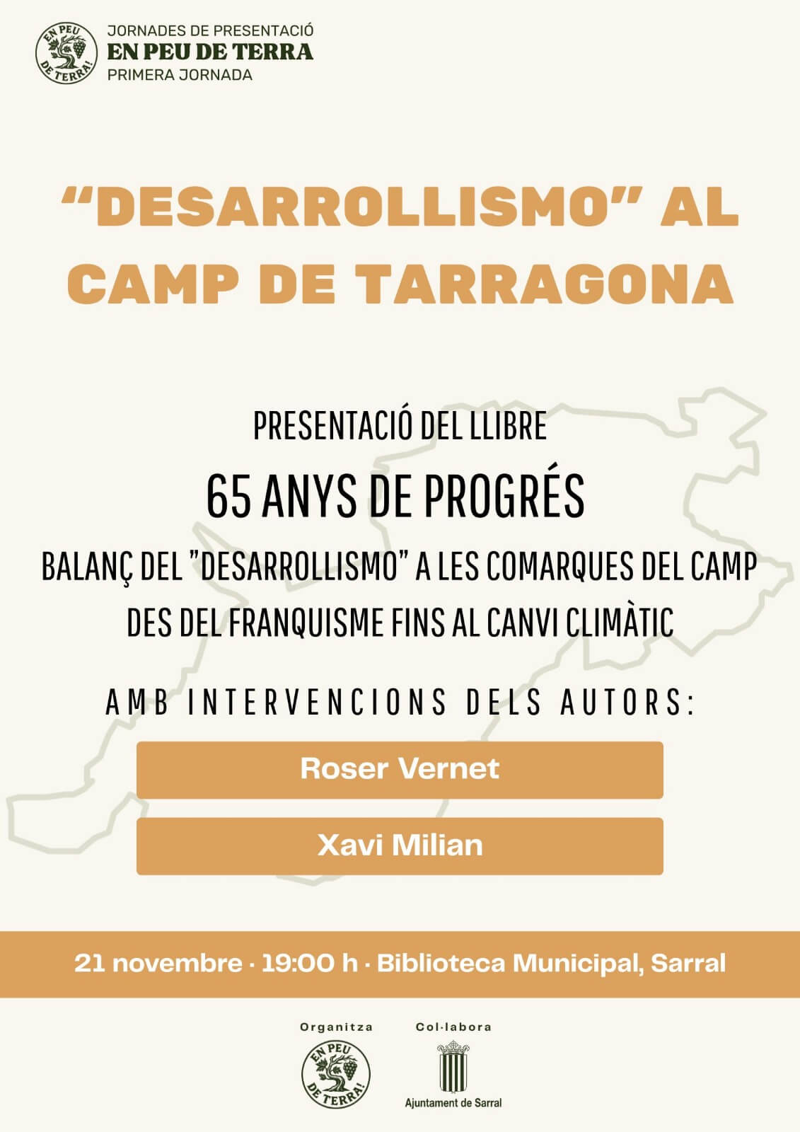 Biblioteca Mossèn Tomàs CapdevilaEl proper divendres 21 de novembre a la Sala de Baix de la Biblioteca de Sarral, presentació del llibre "65 anys de progrés", un balanç sobre el model de desenvolipament econòmic de les comarques del Camp de Tarragona. Comptarem amb la intervenció dels autors Roger ... [Llegeix més]