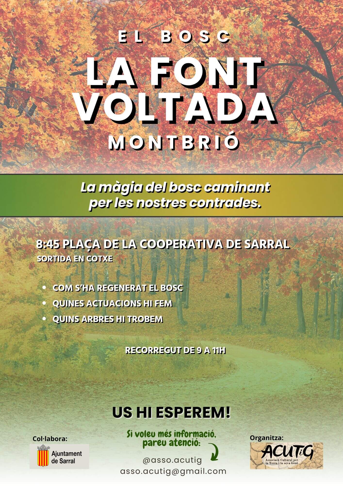 Montbrió de la MarcaACUTiG prepara una sortida matinal al bosc. Descobrirem la zona de la Font Voltada a Montbrió de la Marca. Participeu i aprendreu a identificar la flora d'aquest indret i veureu la seva recuperació després dels incendis. Diumenge dia 19 d'octubre de 9 a 11h. Sortida ... [Llegeix més]
