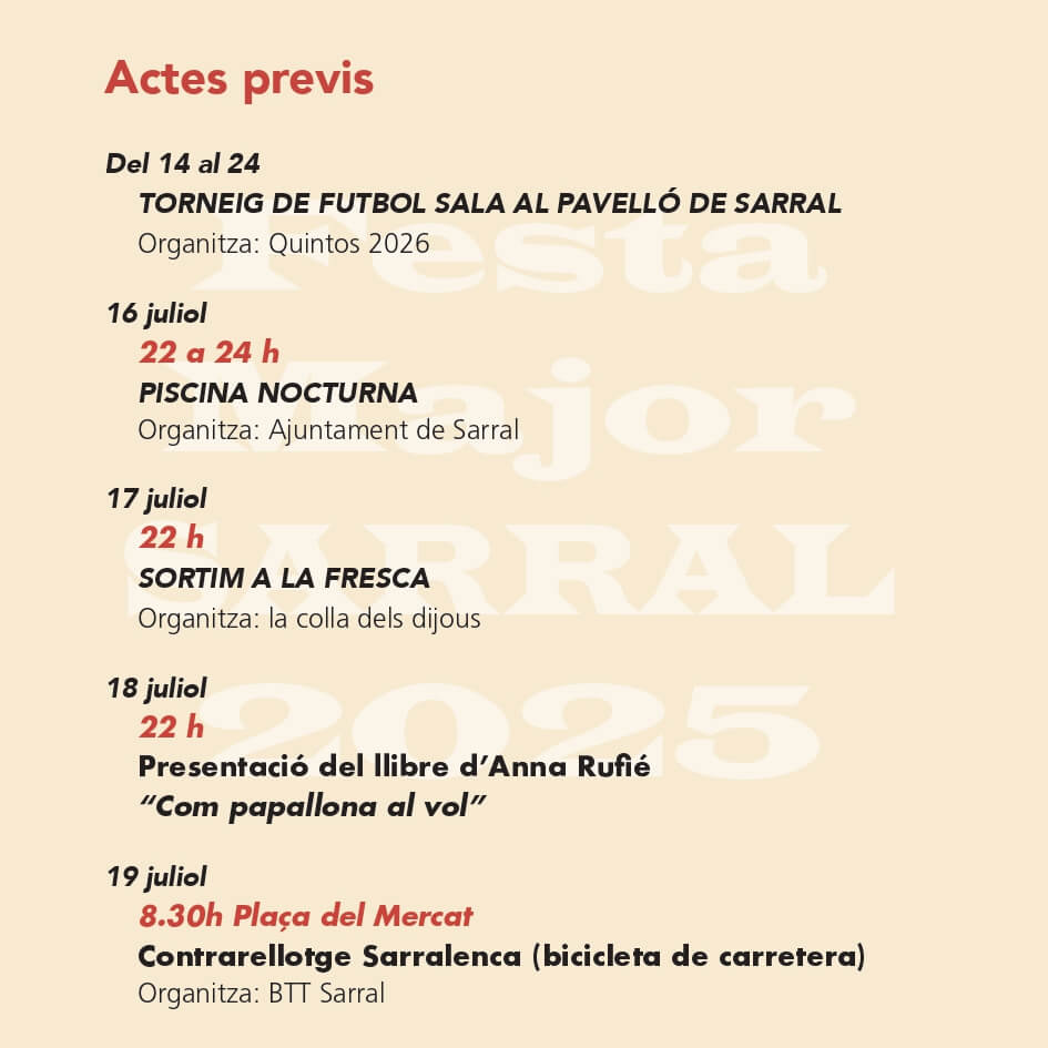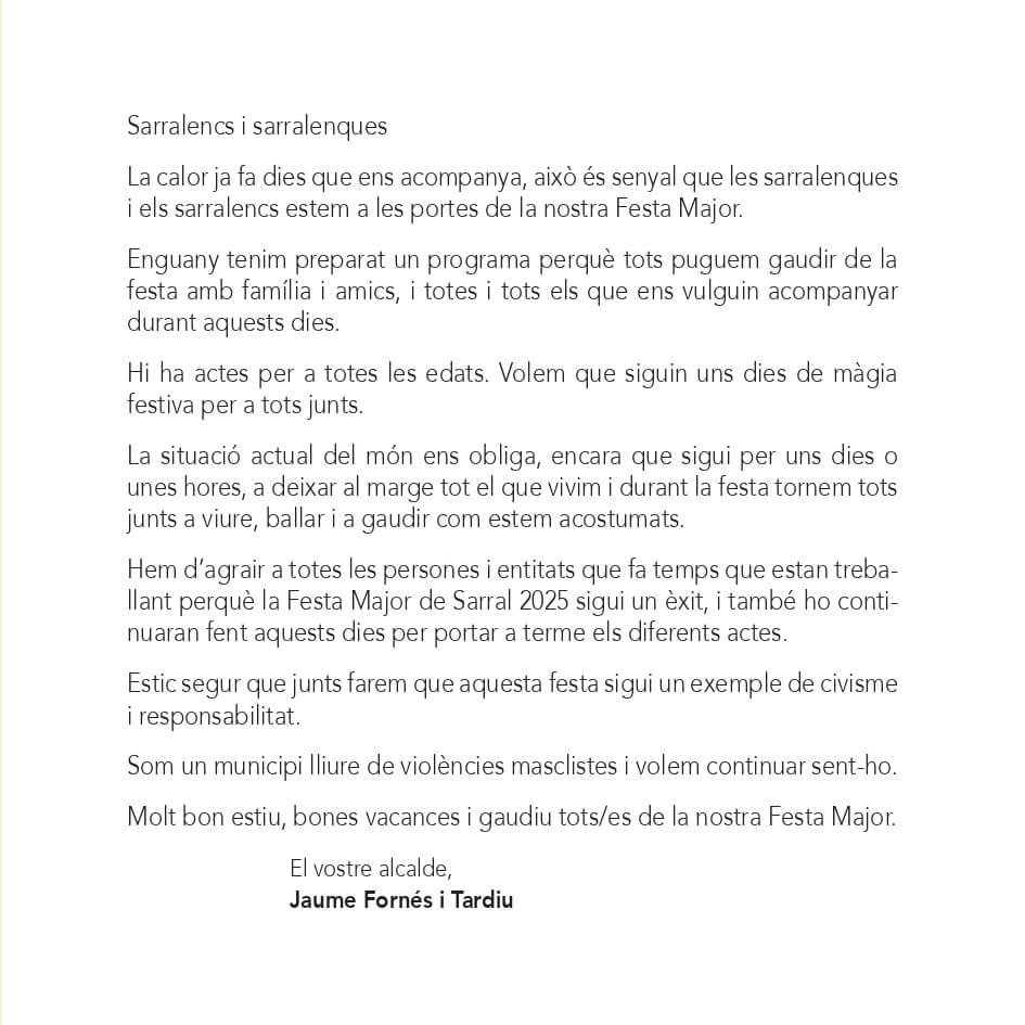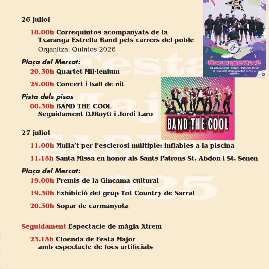 Diumenge 20 de juliol comença la Festa Major de Sarral 2025.