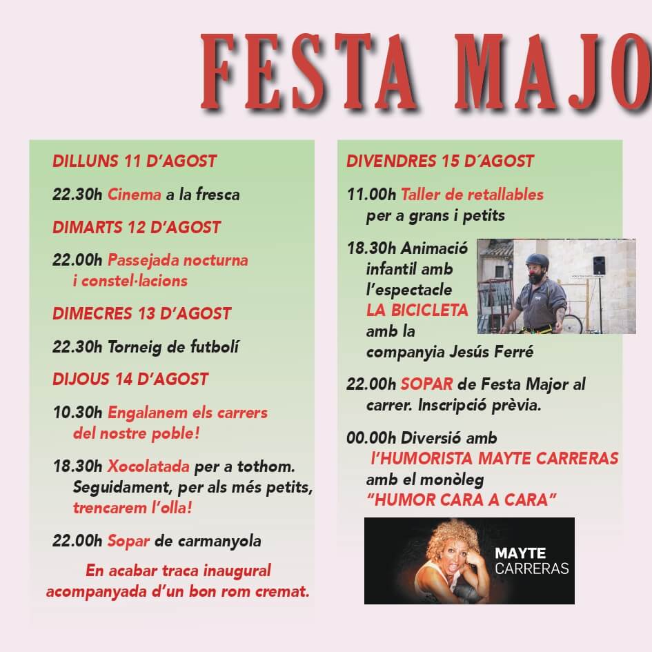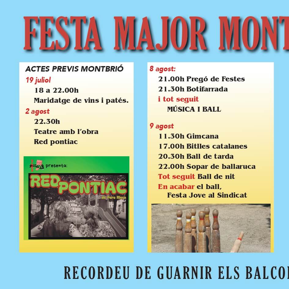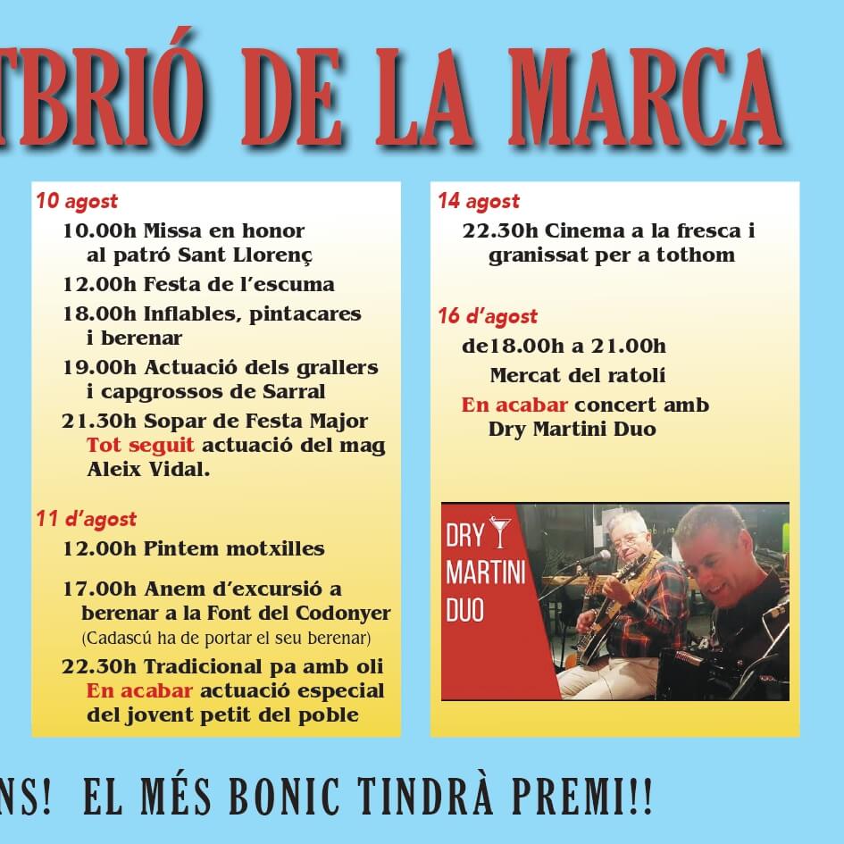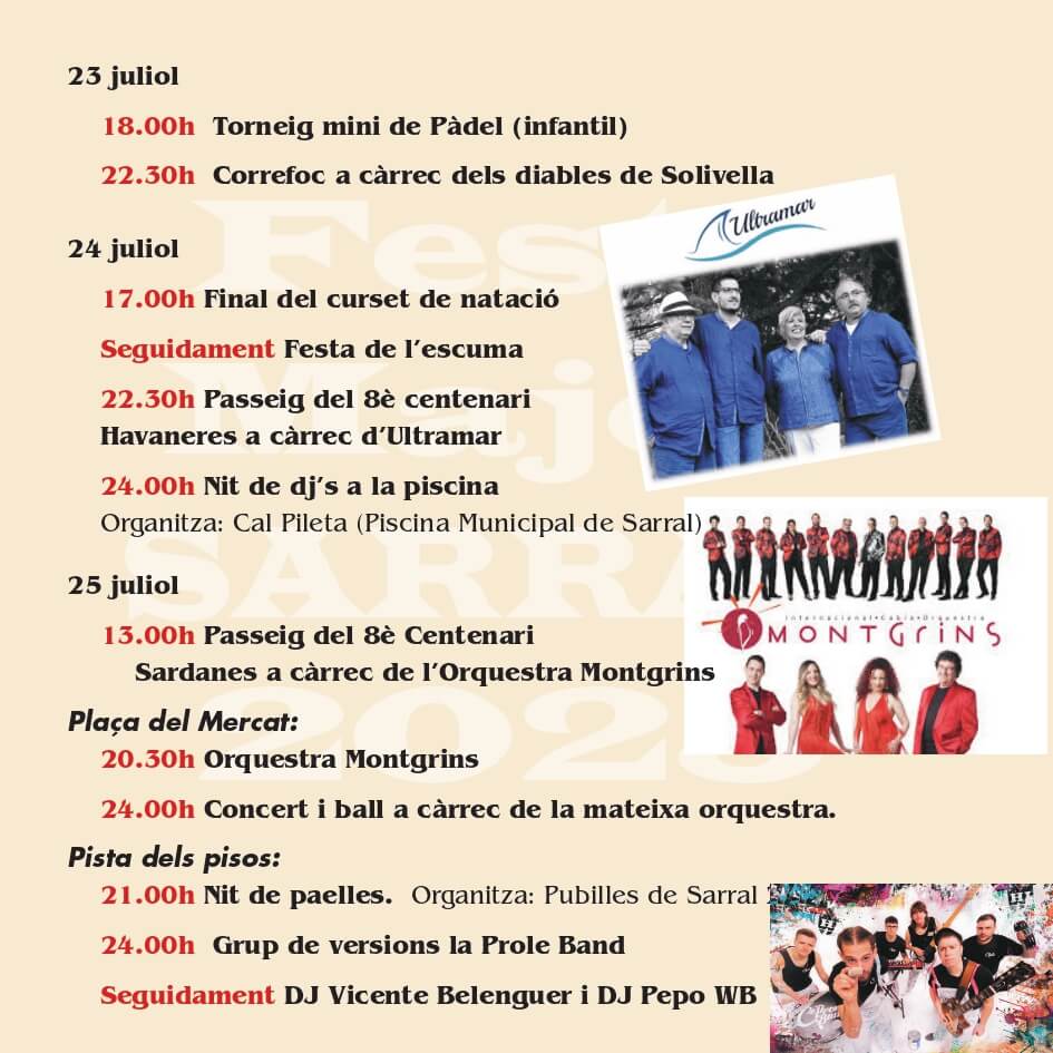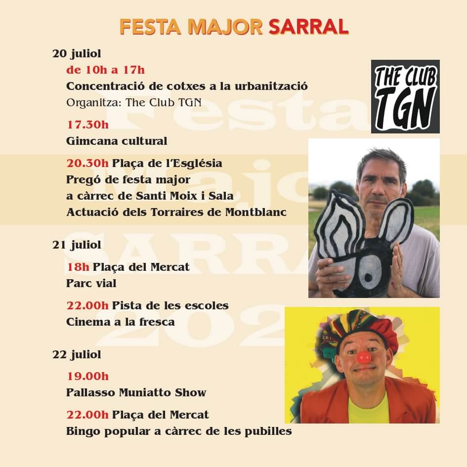 A continuació trobareu el programa de Festes de Sarral, Montbrió de la Marca i Vallverd.