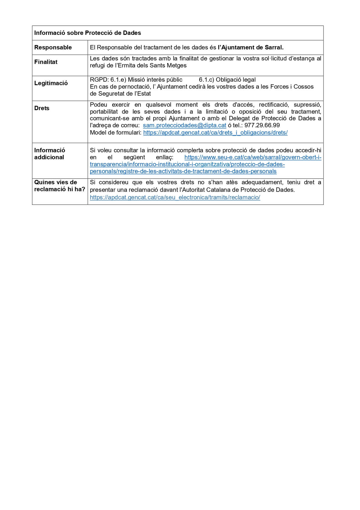 Capacitat: 6 persones